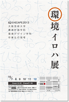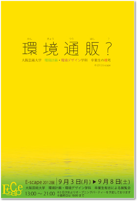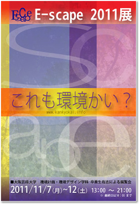 ”E-scape ”は、大阪芸術大学芸術学部、環境〈環境計画・環境デザイン〉学科の卒業生有志による、勝手気ままなグループ展です。